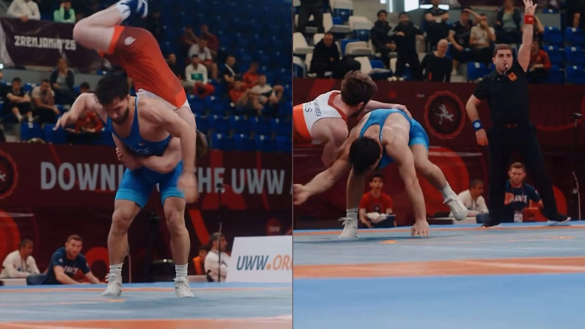 Россиянин Бозигит Исламгереев одержал немыслимую победу над представителем Франции Рахимом Магамадовым в четвертьфинале чемпионата Европы по борьбе. На последних секундах наш соотечественник совершил буквально чудо-бросок: прыгнул через соперника, схватился вверх ногами за спину и перебросил его через себя.