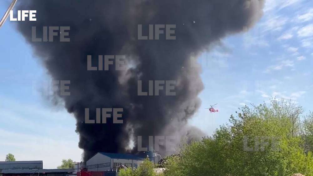Возгорание покрышек в подмосковном Дзержинском тушат с помощью двух вертолётов. Об этом Лайфу сообщили в региональном управлении МЧС РФ.