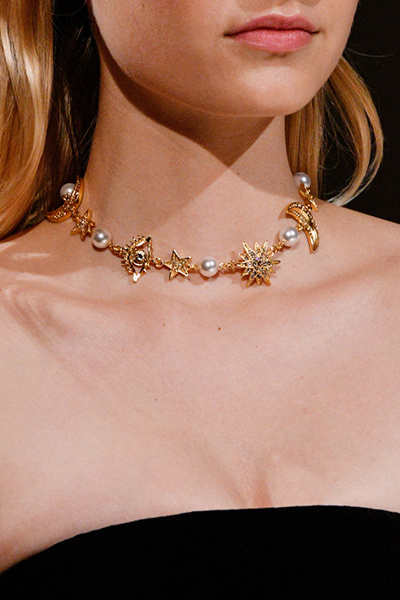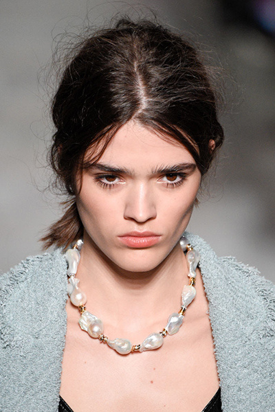 Здесь тоже актуальны барочные жемчужины. При этом современные бусы стали короче и похожи скорее на чокер. Особенно актуально и красиво они смотрятся надетыми вместе с несколькими цепочками и подвесками. Так, в прошлом году все модницы сходили с ума от подвесок-букв Celine. Сейчас многие демократичные бренды выпускают подобные кулоны, можно найти в том числе и буквы из жемчуга. Если же в наследство от бабушки или мамы вам досталась нитка классических бус, их можно обыграть, прицепив к ним крупный кулон, или надеть несколько цепочек, и обязательно все это носить не на выход с нарядными платьями, а в повседневных комплектах.