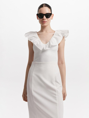 Элегантный «верх» с трогательной деталью должен быть в арсенале даже у самых консервативных модниц. Он спасает тогда, когда нужно срочно сообразить образ на торжественный вечер или неожиданное свидание. Надевайте такие боди и лонгсливы взамен привычных классических футболок: например, с юбками-миди, черными брюками, джинсами и шортами. Если все эти сочетания кажутся тривиальными, попробуйте еще один хит сезона — белый тотал-образ.