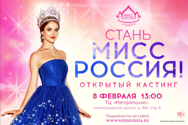 В этом году национальный конкурс красоты проведет Открытый кастинг 8 февраля в 13.00 в ТЦ «Метрополис» (Ленинградское шоссе, 16А, стр. 8).