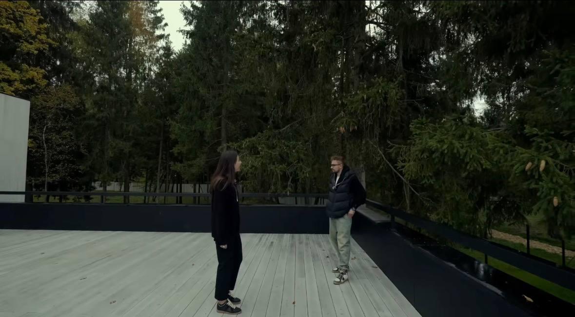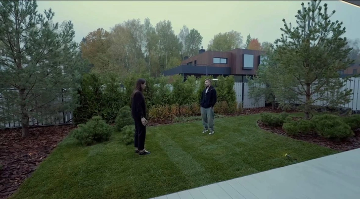 Судя по кадрам, в доме также есть уютные переходные зоны — лестница с подсветкой ступеней, просторные холлы и выходы на улицу, где открывается вид на участок с деревьями. Особое место в этом доме занимает крытая веранда у входа. Актер описывает ее как точку притяжения: место, где можно встретить гостей, выпить кофе или просто провести время на свежем воздухе.