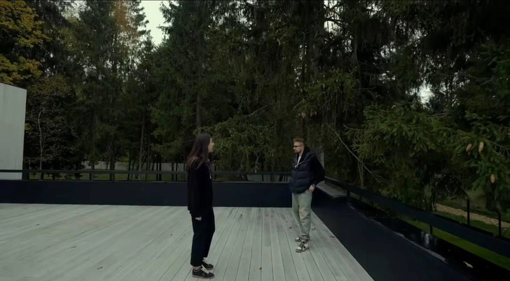 На втором этаже расположена настоящая «жемчужина» — терраса площадью более 80 квадратных метров. По сути, это пространство сопоставимо с полноценной трехкомнатной квартирой. Из кабинета предусмотрен отдельный выход, и сам Петров признается, что это место уже вдохновляет его на новые идеи. Оказавшись здесь, по его словам, мысли начинают работать иначе, появляется желание создавать.