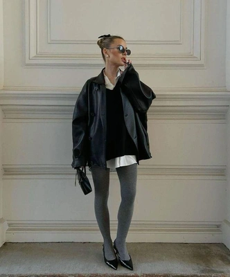 Да, они выглядят более нейтральными по сравнению с огненными или небесными, но от этого они не становятся менее стильными. Их прелесть как раз в этой универсальности. Серые колготки можно стилизовать не только со спокойной базой, но и добавить к светлому или даже яркому наряду. Они выступают отличным связующим звеном, смягчая контрасты и добавляя луку благородную, сложную глубину.