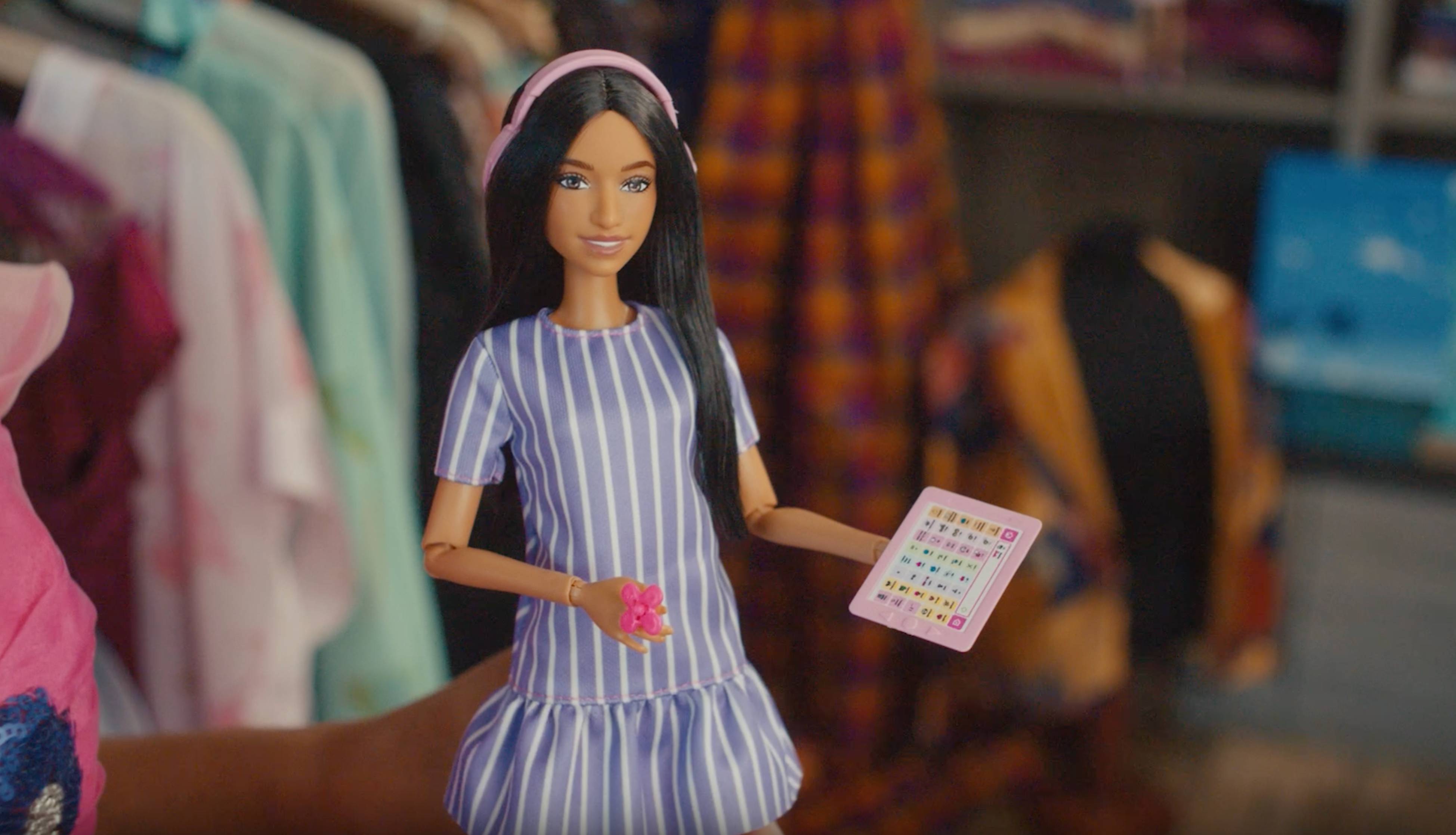 Новая кукла оснащена аксессуарами, которые помогают в повседневной жизни некоторым людям с аутизмом, — наушниками с шумоподавлением, спиннером и планшетом с приложениями для альтернативной коммуникации. Её дизайн, включая направленный в сторону взгляд и повышенную подвижность суставов для жестикуляции, был разработан совместно с американской правозащитной организацией Autistic Self Advocacy Network (ASAN).