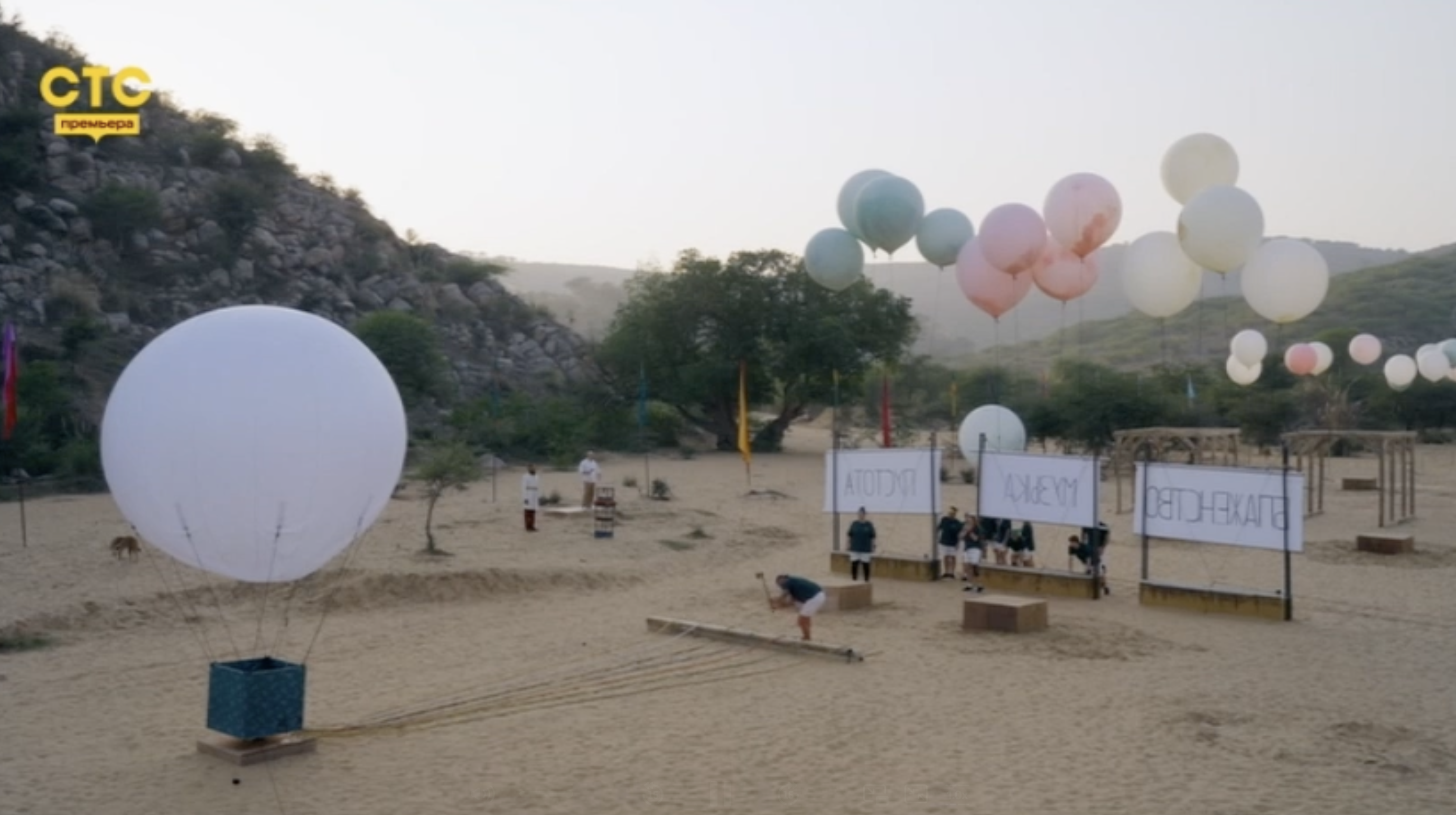 Чтобы разобраться в происходящем, все решили собраться и выиграть подсказку на новом испытании. Там снова нужно было разделиться на команды, пронести гигантские надувные шары по коридору с пиками так, чтобы шар не лопнул, затем зацепить шары за билборд, чтобы он поднялся и показал написанное слово. С этим справились относительно быстро. Затем из трех таких слов на билбордах нужно было выстроить логическую цепочку и найти четвертое слово — собрать его из букв определенного цвета. Тут у всех наступил ступор: ничего не подходило, и время истекало. В отчаянии на последней минуте решили наугад отрезать веревку, держащую воздушный шар, на дне которого находился код от ящика с подсказкой. Все решили рубить синий канат — и им повезло. Они увидели заветные цифры и сумели вытащить подсказку в последнюю секунду.