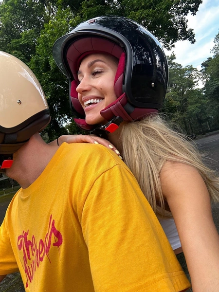 Сначала в Сети появились снимки, на которых они запечатлены во время поцелуя в мотоциклетных шлемах, а затем и вовсе откровенный кадр в постели с лаконичной подписью «Текста не будет». В середине февраля Асмус опубликовала фото, где лицо Валерия видно полностью: на фоне балийских джунглей, у водопада Банью Вана Амерта, в серой куртке и голубой футболке.
