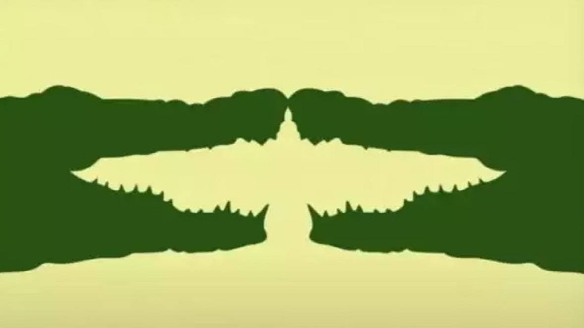 Одни увидят пару крокодилов, повернувшихся друг к другу и словно готовых поцеловаться, а другие — орла в полёте.