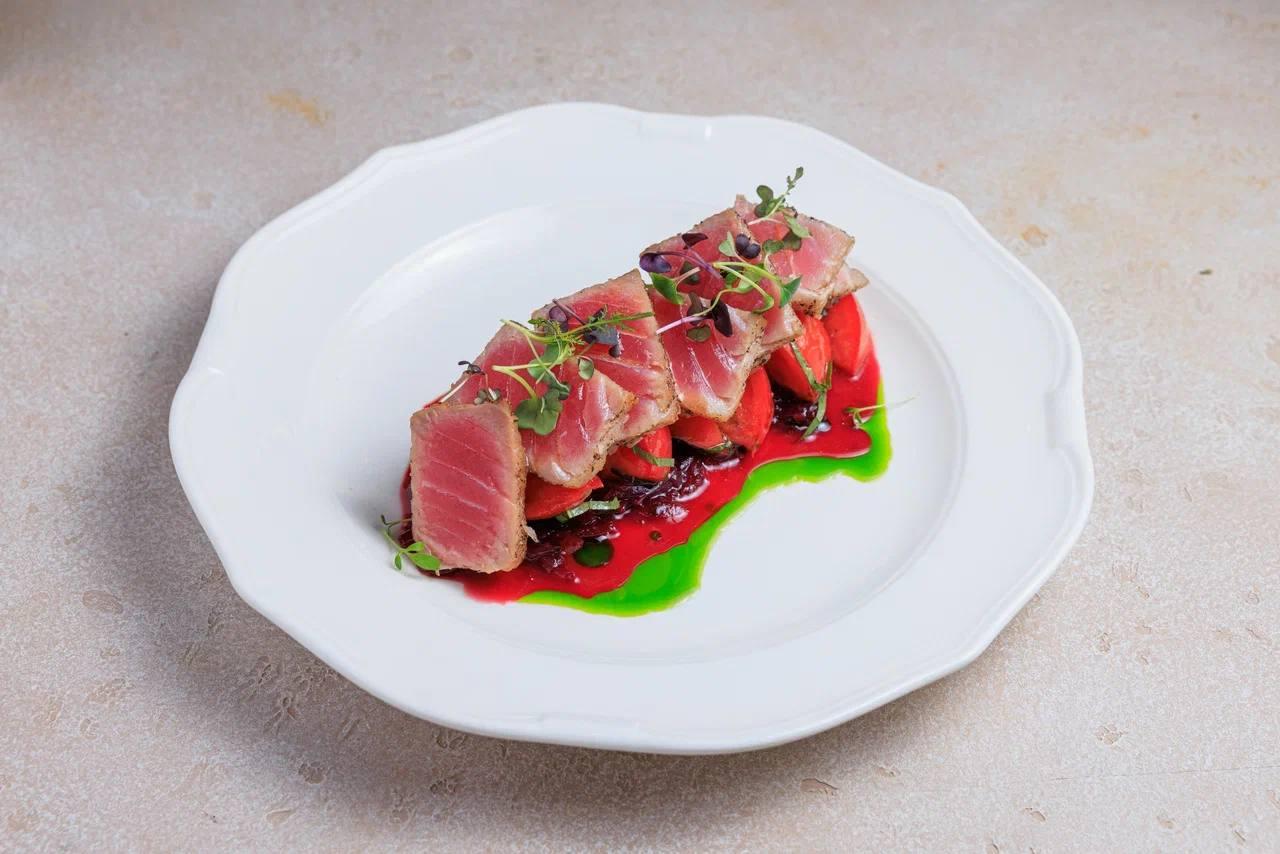 Начать обед или ужин он предлагает с любимых итальянцами закусок — солоновато пармы с панцеротти или бурраты «Папа аль помодоро», отсылающая к классическим тосканским мотивам. Освежающим и легким дополнением станет салат моцарелла с авокадо и узбекскими томатами. В качестве основного блюда команда ресторана рекомендует попробовать ригатони с оссобуко — мясным рагу из говядины в насыщенном соусе демиглас, а любителям морепродуктов придутся по вкусу равиоли с сибасом, креветками и трюфелем. Не менее интересной альтернативой для гурманов может стать нежная томленая грудинка с трюфельным пюре, а тем, кто предпочитает рыбу, придется по вкусу сочный сибас, запеченный в печи, или мясистый тунец с луком и помидорами.