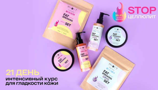 В каждый из боди-сетов Mixit входит четыре средства: антицеллюлитный скраб, кремовое обертывание с разогревающим или охлаждающим эффектом и пленкой для процедуры, а также массажное масло — тоже с дополнительной прохладой или огоньком.