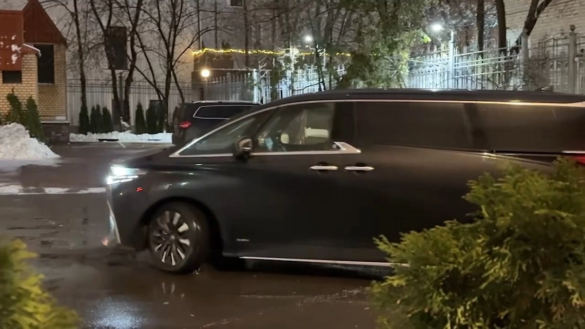 Видно, как дорогой микроавтобус подъезжает к дому и спустя время заруливает на подземную стоянку. Всё произошло около 16:40 мск.