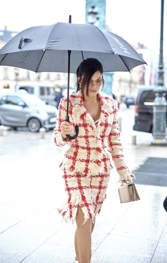 Первые плоды этого сотрудничества мы уже увидели на текущей Неделе высокой моды в Париже. Недавно Лорен появилась на улицах города в архивном костюме Versace 2004 года с ярко-красной твидовой клеткой и нарочито небрежной бахромой. Дополняли образ в стиле «богатого шика» белые лодочки Jimmy Choo и структурированная сумка Schiaparelli, крупные очки с карамельными линзами и высокий хвост. А сопровождал ее лично Роуч.