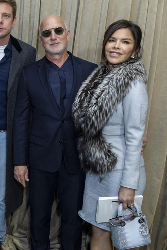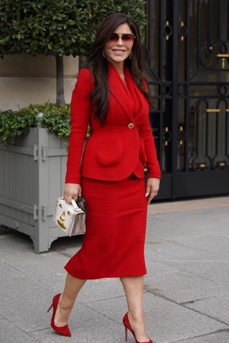 Впрочем, есть и еще несколько выходов, которые мы видели днями ранее. И судя по составляющим, их тоже собирал Лоу. Например, на шоу Dior Лорен Санчес появилась в серо-голубом костюме с приталенным жакетом с пушистым воротником, лодочках цвета мокрого асфальта и серебристой сумочкой, а на показе Schiaparelli — в ярком total-red образе настоящей первой леди.