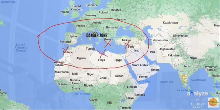 В этот период также возможны стихийные бедствия. Их можно ожидать в определенных регионах, отмеченных на карте (приведена ниже). По словам провидца, серьезные проблемы произойдут во Франции, Австрии, Румынии, Греции, Турции, Сирии, Ираке, Египте, Алжире, Марокко, Португалии и Испании.