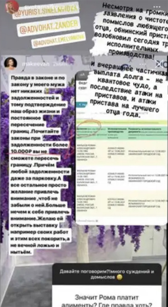 «Несмотря на громкие заявления о чистоте помыслов любящего отца, обнинский пристав возобновил сегодня три исполнительных производства! И вчерашняя частичная выплата долга — не квантовое чудо, а последствие атаки на приставов. И атаки пристава на лучшего отца года», — написала Светлана на своей странице в Инстаграме.