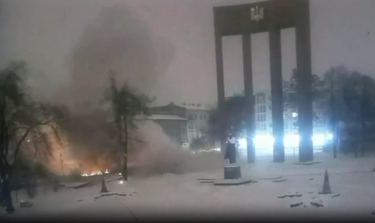 Ночью дрон упал на площадку с памятником Степану Бандере во Львове. Снятые видеокамерой кадры прилёта публикуют украинские СМИ. Из официального сообщения Воздушных сил ВСУ следует, что это стало следствием работы украинской ПВО.