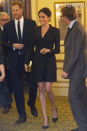 Зрители благотворительного спектакля в лондонском театре Victoria Palace Theatre — мюзикла Hamilton — стали свидетелями появления в зале и его супруги Не заметить эту пару было просто невозможно, и на Меган гости смотрели особенно внимательно. Во-первых, потому, что она нарушила неписанное правило королевской семьи — не появляться на публике в нарядах «выше колена». Герцогиня же выбрала для похода в театр смелое миниплатье-блейзер. Такой наряд Меган продемонстрировал стройные ножки герцогини. Зрители с изумлением заметили, что ее колени и щиколотки стали выглядеть почти такими же, как у рекордсменки Голливуда по части худобы — Анджелины Джоли!