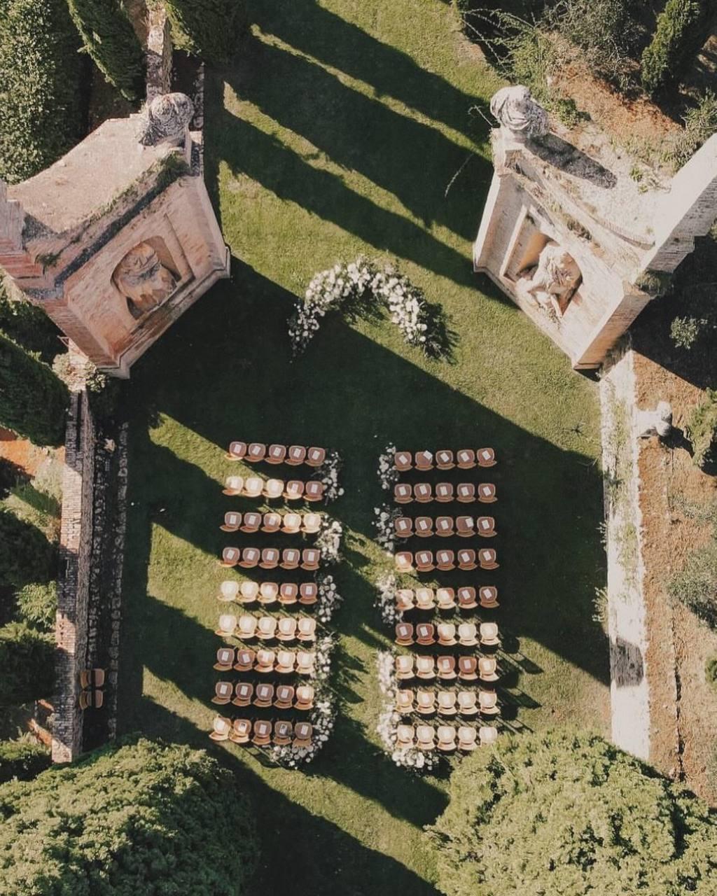 История их любви началась в 2021-м, через два года они сообщили о помолвке, а весной 2024-го поженились: сначала тайно, а потом на сумасшедшей красоты церемонии в Италии. Невеста была в классическом подвенечном платье Galia Lahav (всего за вечер она сменила четыре наряда), жених — в белом смокинге. Церемония проходила на открытом воздухе — в саду старинной виллы Цетинале в Тоскане.