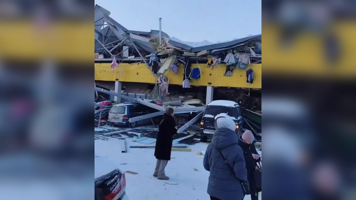 Момент обрушения крыши супермаркета «Ярче» в Новосибирске попало на видео. Ролик телеграм-канал Mash Siberia.