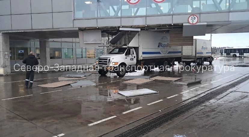 Появилось новое видео аварии с грузовиком в петербургском аэропорту Пулково. Кадры публикует пресс-служба Северо-Западной транспортной прокуратуры.