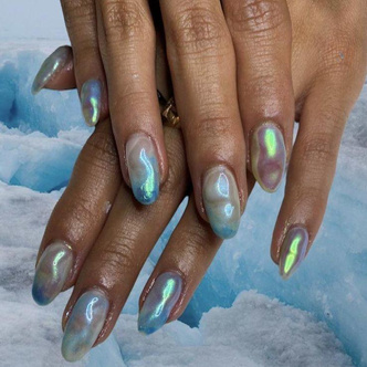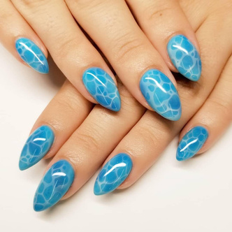 Pinterest и другие соцсети стремительно пополняются самыми разнообразными вариациями водяного маникюра. Кто-то акцентирует внимание на бликах света, отражающегося на волнах; другие вдохновляются айсбергами — королями Атлантического океана — стараясь передать на ногтях их величественное сияние