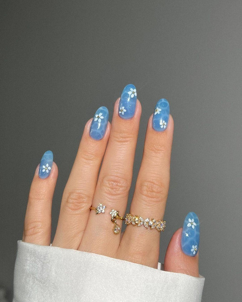 Водяной дизайн стал популярным весьма закономерно — сразу после того, как в моду пришла эстетика . Далекий и волшебный мир русалок вдохновляет модных девушек на характерные наряды, включающие в себя обилие голубого цвета, жемчуга и других морских атрибутов. Неудивительно, что вслед за в моду пришли такие же нейл-дизайны: вспомните, у всех русалок из сказок были длинные ногти, блестящие и завораживающие.