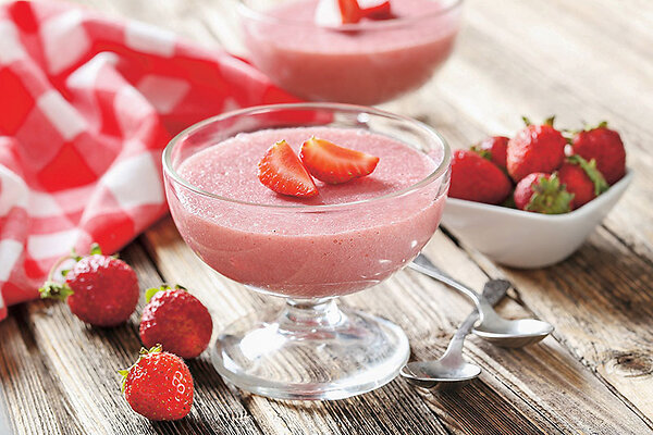 Украсить дольками клубники и подавать к столу.