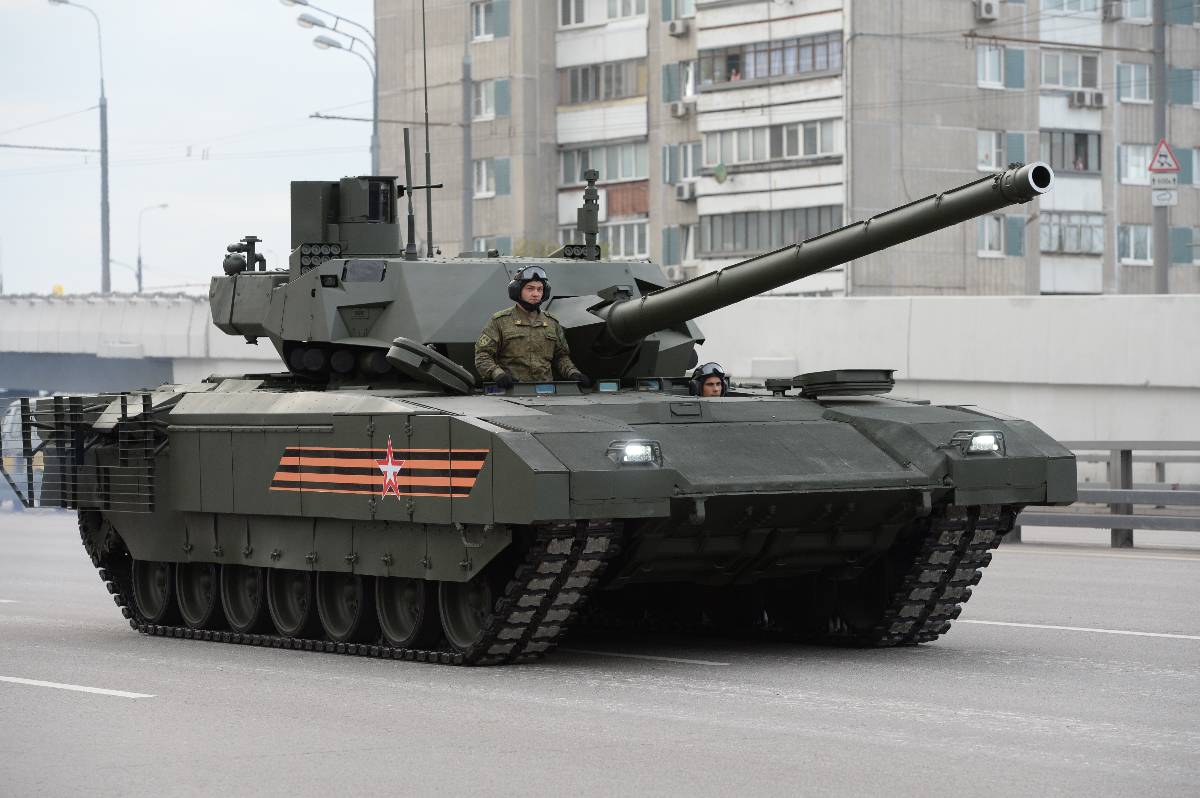 Российские танки Т-14 "Армата" принимают участие в спецоперации на Украине, Military Watch Magazine со ссылкой на появившиеся в Сети кадры. Судя по ним, машину "поймали" во время работы по вражеским позициям. На её бортах видна дополнительная защита от противотанковых боеприпасов.