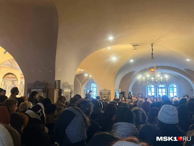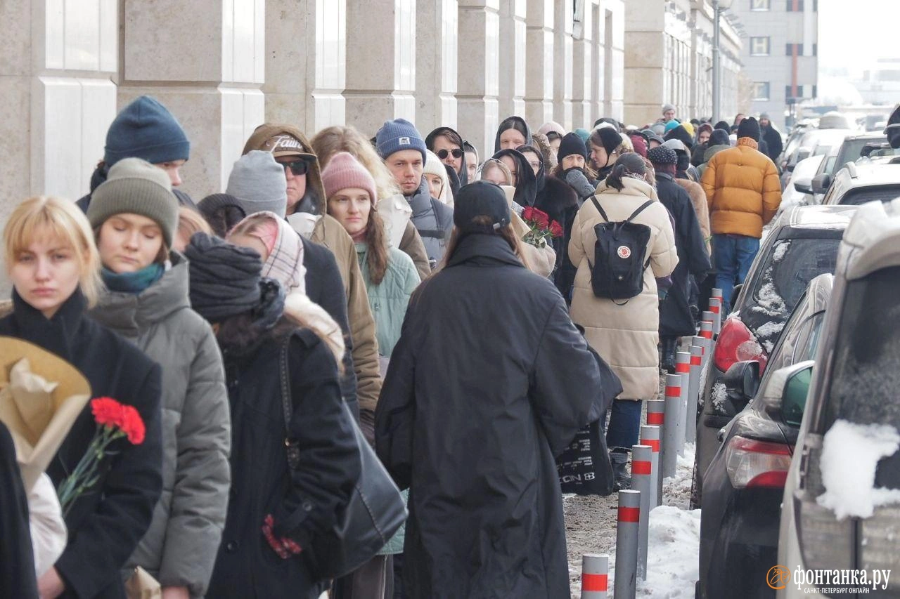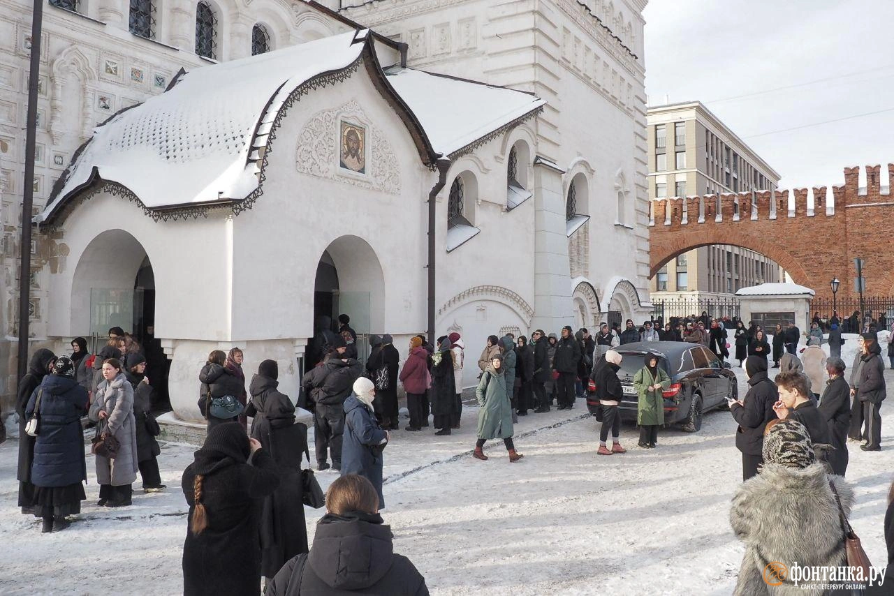 Люди стоят в очереди возле Феодоровского собора, чтобы проститься с Николаем Комягиным