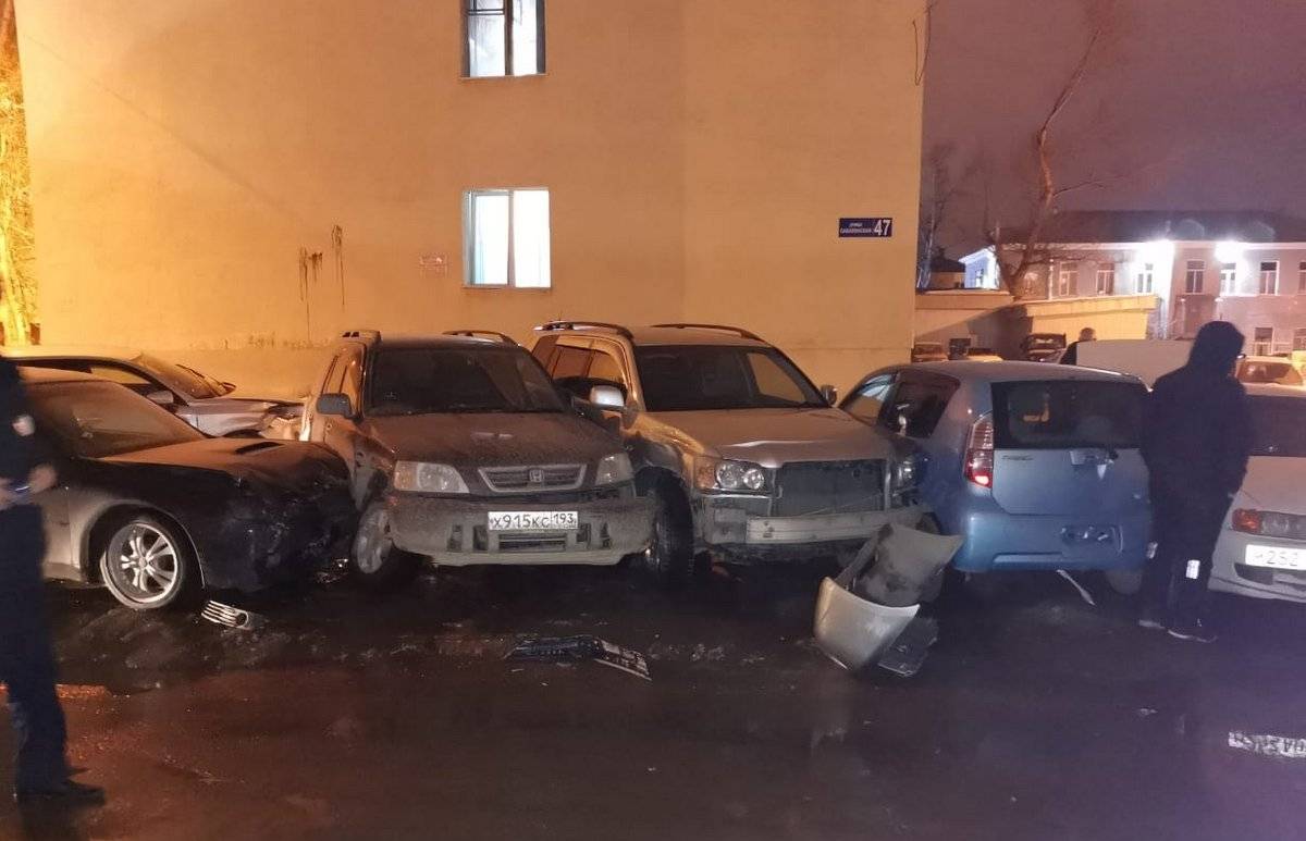В Южно-Сахалинске водитель иномарки на большой скорости врезался в припаркованные во дворе многоквартирного дома машины. Инцидент, как сообщают местные СМИ, произошёл во дворе дома № 47 по улице Сахалинской.