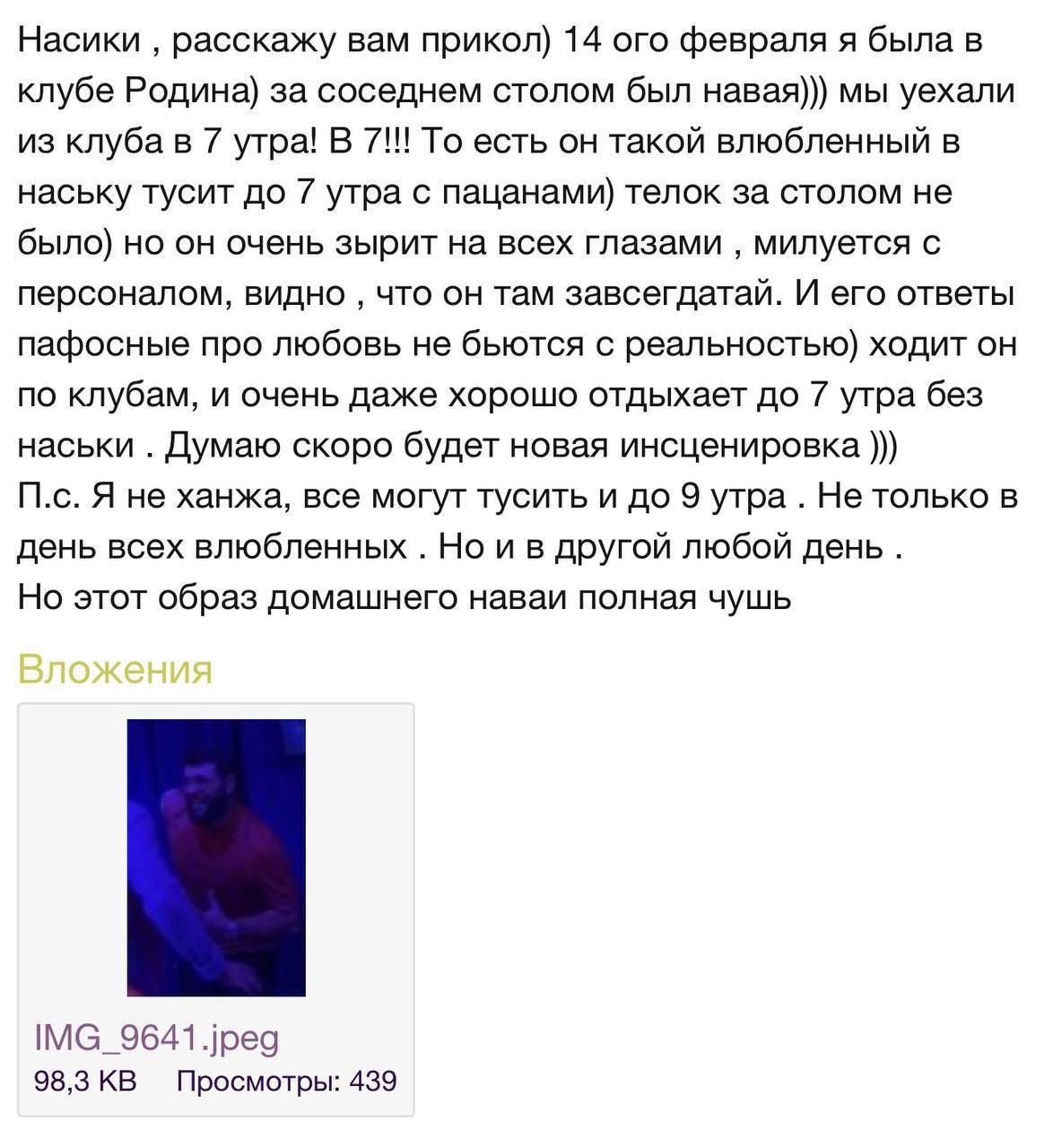Исполнитель хита «Птичка» в День всех влюбленных до утра танцевал в клубе «Родина», хотя в социальных сетях делал вид, что провел 14 февраля с возлюбленной. А Настя спустя несколько дней улетела в Дубай одна.