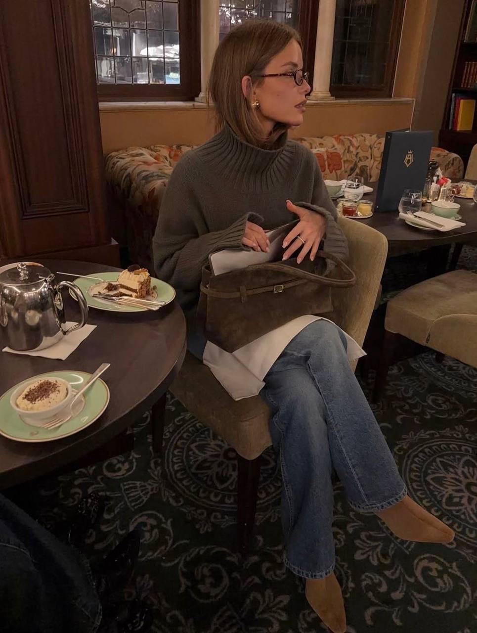 При этом frugal chic не означает скучную капсулу из черного пальто и бежевого свитера. База у каждого своя. Для кого-то это серый костюм и лоферы, для кого-то леопардовое пальто, которое оказывается не менее универсальным, чем однотонное. Важно, чтобы вещи сочетались и отражали ваш характер. Шарф может быть не только шерстяным, но и меховым. Сумка — не обязательно из новой коллекции, а, например, из старой коллаборации, найденной на ресейле.