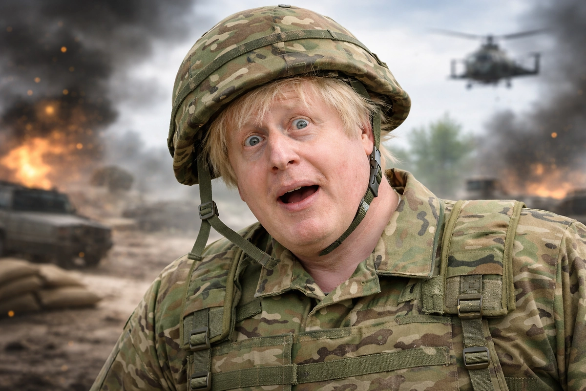 «Борис Джонсон записал репортаж с украинской линии фронта, якобы уклоняясь от российских беспилотников. <…> Взгляните на него в этом бронежилете, он выглядит так нелепо! Вы хотите сказать, что Борис Джонсон смог увернуться от российских беспилотников? Серьёзно?», — отметил обозреватель.
