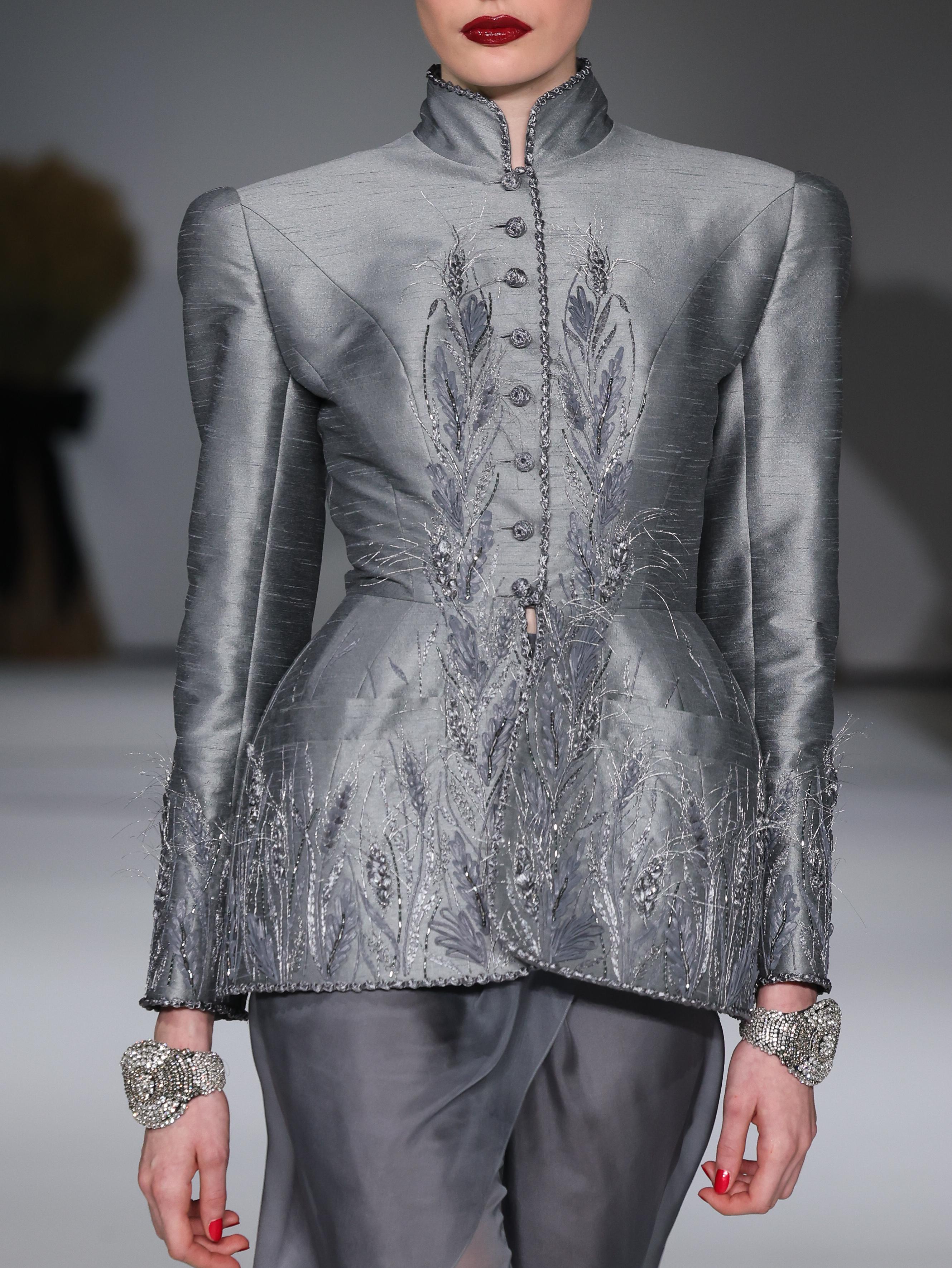 Главным символом, который проходит через всю коллекцию, стал колос. И это тоже не просто украшение, а важная метафора. Колос — это знак стойкости, удачи и способности расти и пробиваться к свету даже в самых сложных условиях. Золотые колосья, будто прорастающие сквозь ткань платьев, выполнены вручную с невероятной тонкостью и стали талисманом героини этого рассказа.