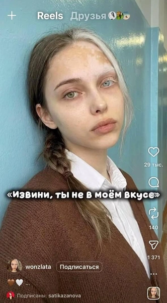 А вот Злата — «та самая с белой прядкой» — тоже имеет особенность внешности: витилиго (едва заметное), разноцветные глаза и полиоз: так научно называется феномен, при котором на волосах появляется белая прядь. По оценкам ученых, он есть только у 1% населения.