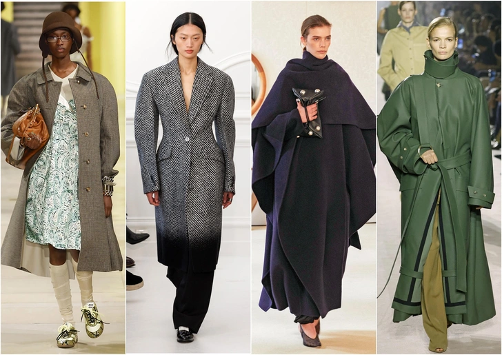Современные дизайнеры вдохновились архивами, но сделали крой более свободным и поиграли с цветами и принтами. Например, Fendi предложил мягкое розовое пальто строгого силуэта, а Miu Miu — вариант в клетку. Такие пальто идеально подойдут тем, кто любит ретро-классику.