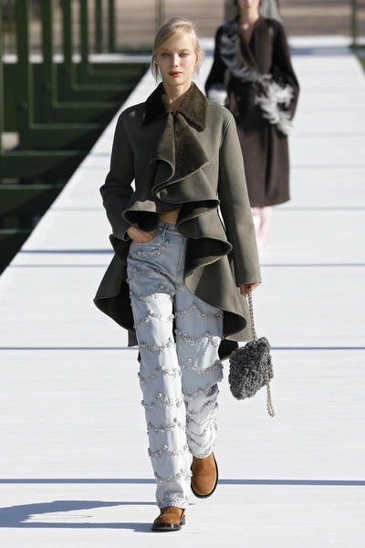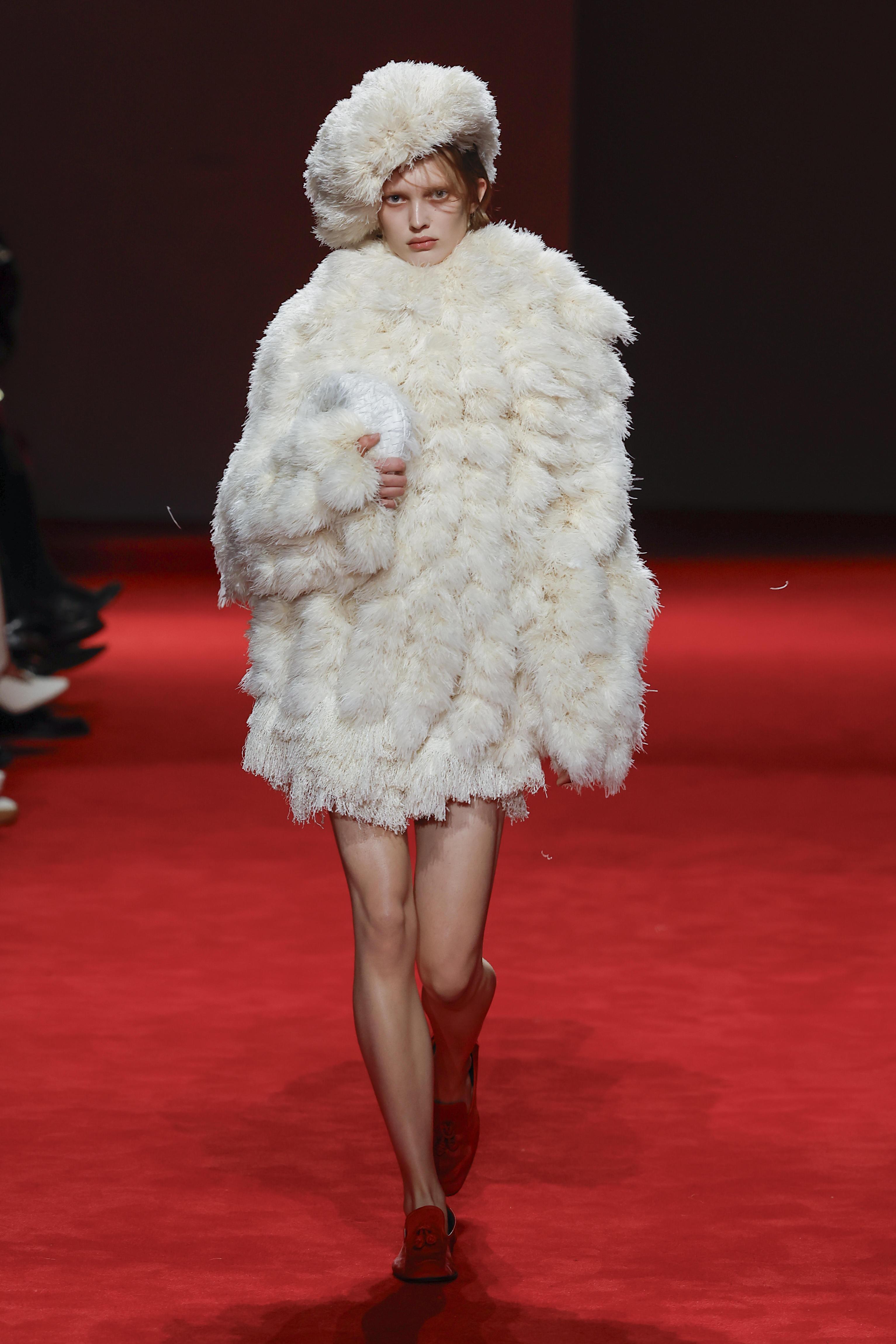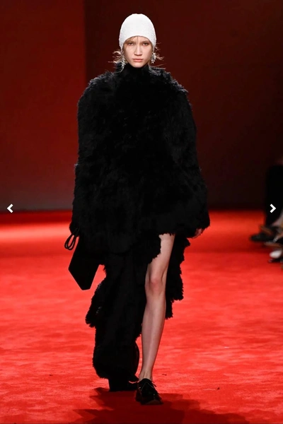 А в этом сезоне она дебютировала на шоу Bottega Veneta. На ней было черное объемное меховое платье с асимметричным подолом, белая шапочка, лаковые ботинки и крупные серьги. Наряд выглядел массивным, но лишь на первый взгляд. Как оказалось, чтобы посадка была точно по ее фигуре, в ночь перед показом рукава укоротили на 10 см, а в талии убрали все 12.