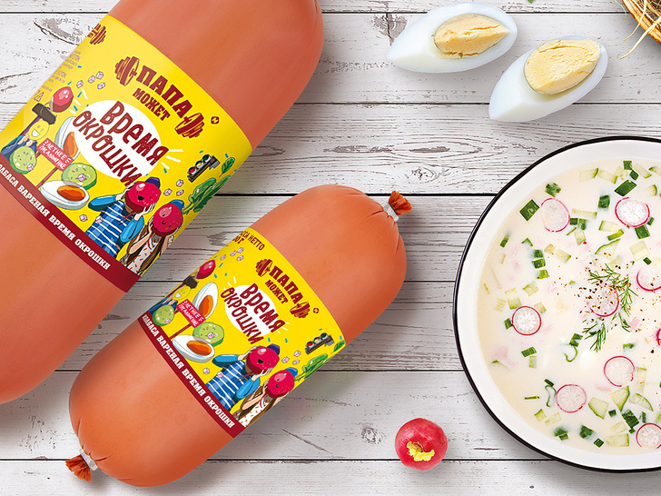 Нарежьте варёную колбаску «Папа может. Время окрошки», овощи и ароматную зелень, смешайте, добавьте холодный квас или кефир, и окрошка готова! Рецептура варёной колбасы специально разработана технологами «Останкинского мясокомбината» для популярного летнего супа, который не только помогает утолить голод, но и отлично освежает в жаркую погоду. Уникальное сочетание мяса птицы, свинины и букета специй поможет приготовить самую вкусную окрошку!