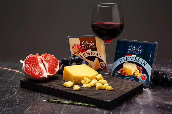 Тёплый весенний вечер станет идеальным с бокалом вина и любимым пармезаном DOLCE в новой гармоничной упаковке. Классический DOLCE Granto созревает 6 месяцев, поэтому имеет изысканный сливочный вкус и аромат. Темпераментный DOLCE Deluxe за 9 месяцев созревания приобретает глубину, насыщенность и терпкость. Сочетайте пармезан DOLCE со свежими цитрусами, грушами, виноградом, конфитюрами, каплей мёда или бальзамического уксуса. Предпочтительно подавать его в пару к винам с мягкими танинами и фруктовым ядром.