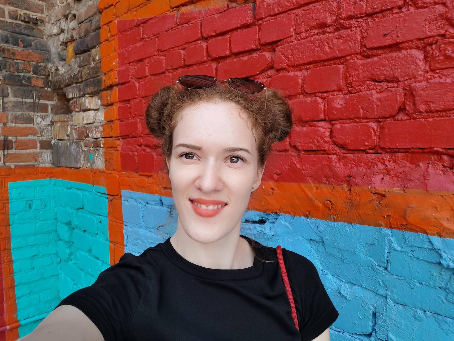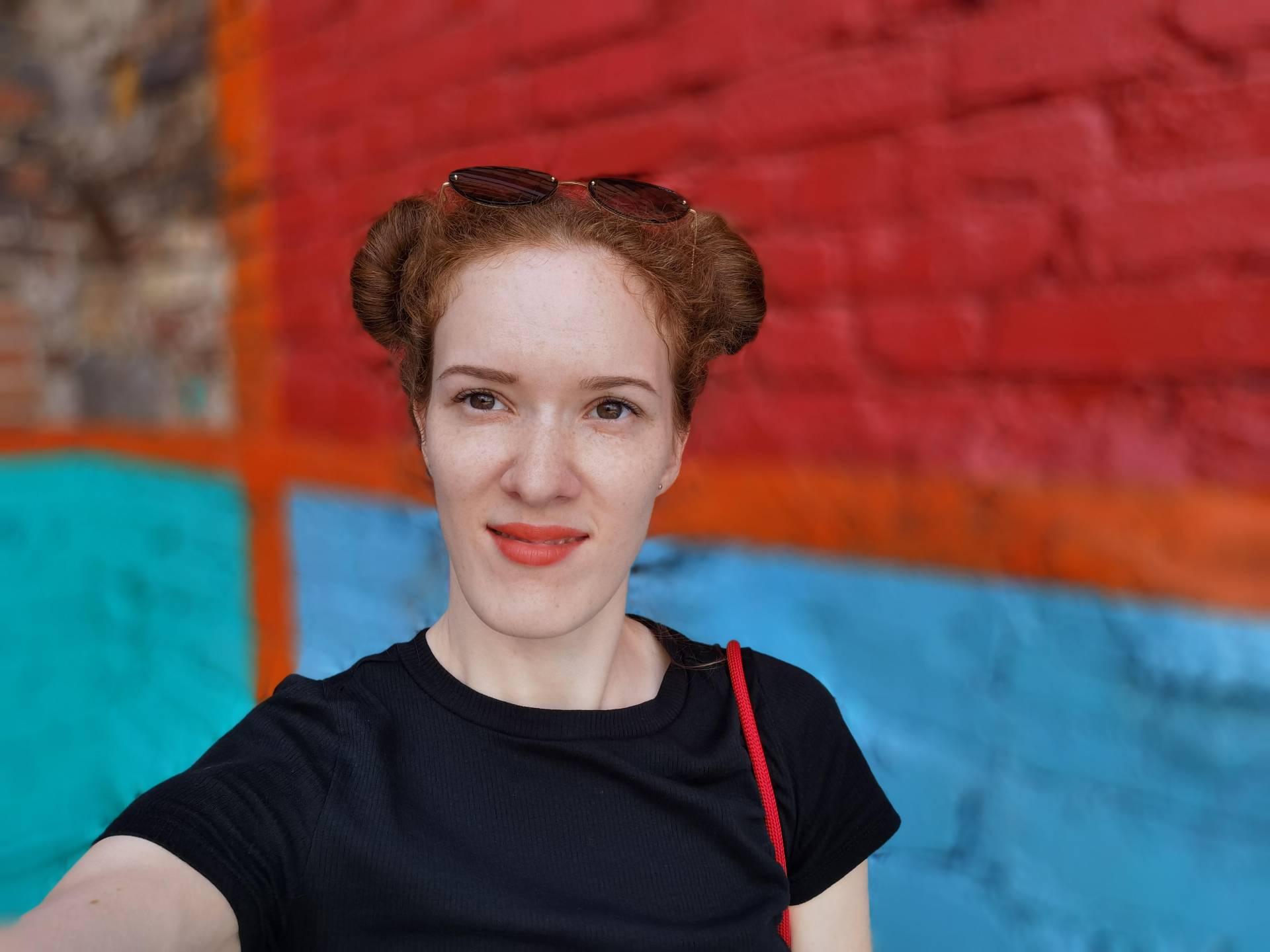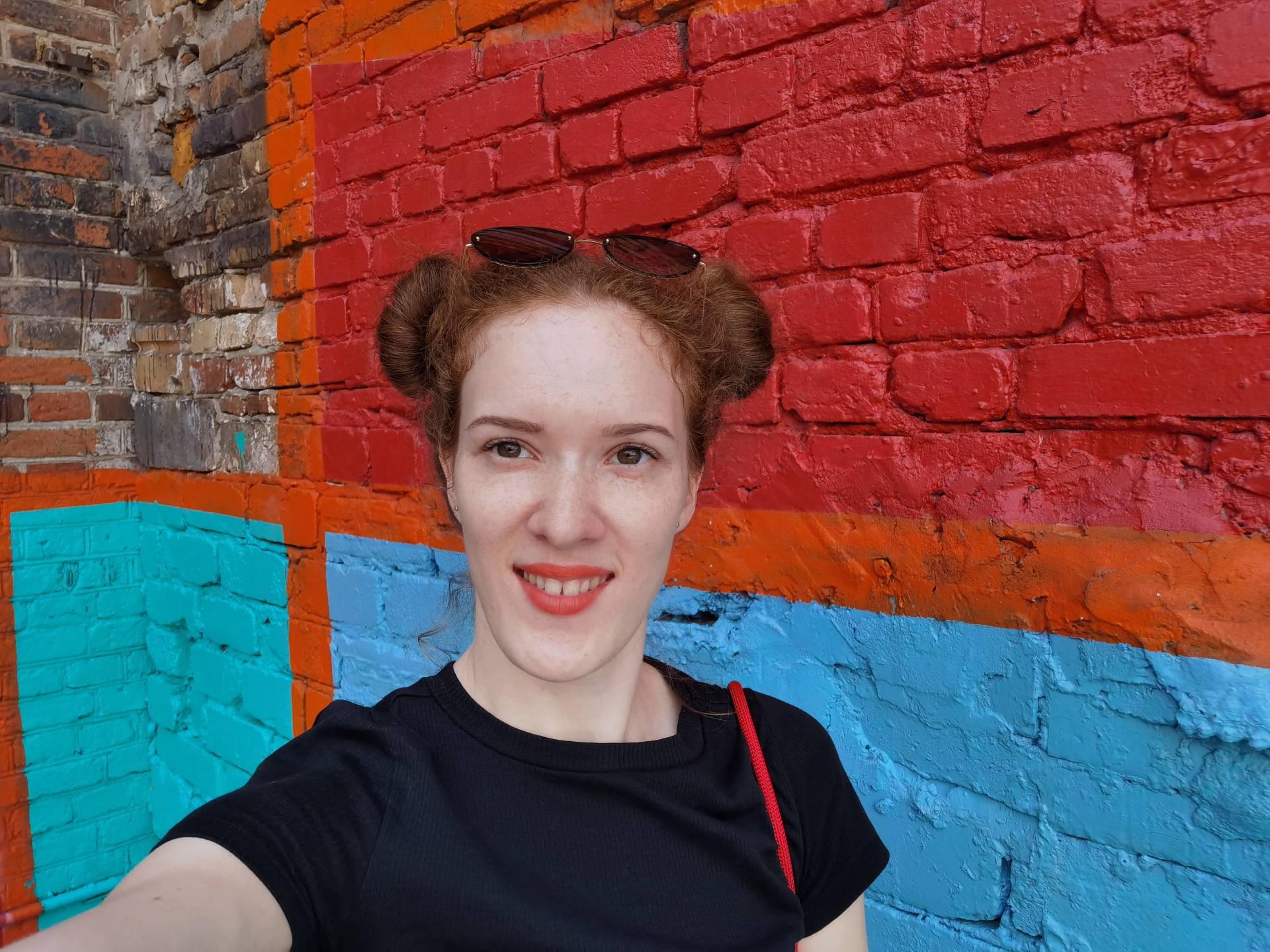 Мы отключили все автоматические украшения и бьюти-фильтры и всё равно кожа получилась немного заблюренная, выглядит неестественно. При этом заметили, что глаза на всех фотографиях почему-то получаются темнее, чем в реальности, видимо, это особенность Huawei, так как этот же эффект замечен на Mate 30 Pro. То же самое получается и на селфи. В портретном режиме зумирование происходит за счёт кропа, поэтому на трёхкратном увеличении заметны явные пиксели.