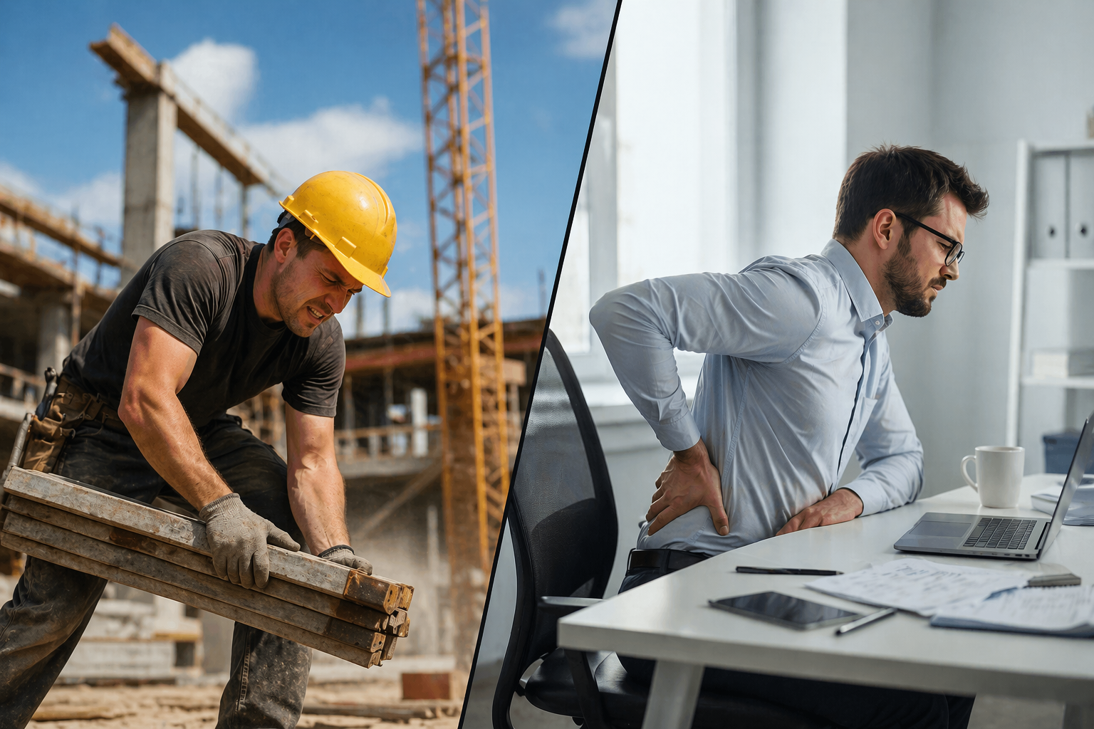 На стройке травмы, как правило, острые: падение, удар, перегрузка. Их сложно не заметить. В офисе же проблемы накапливаются годами.