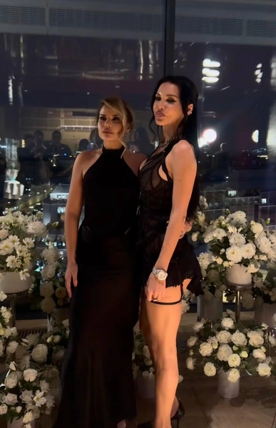Для вечера именинница выбрала смелый и эффектный образ, подчеркнувший ее новую уверенность в себе. Самойлова появилась в полупрозрачном черном мини-платье в бельевом стиле с корсетными элементами и декоративными ремешками, дополненном чулками с подвязками. Наряд она дополнила массивным ожерельем, крупными серьгами и дорогими часами. Образ получился провокационным — в духе ее последних выходов.