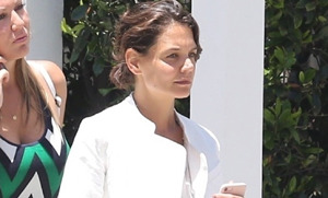 На днях актриса была замечена в Калифорнии неподалеку от ресторана, где она тайно обедала со Скоттом Иствудом, сыном Клинта Иствуда. Для рандеву Кэти выбрала весьма спорный туалет, состоящий из безразмерных мятых брюк, рубашки и жакета. Образ завершали не слишком презентабельного вида шлепки и сумка-котомка. Выбор наряда можно смело назвать не самым удачным: брюки с заниженной талией буквально изуродовали фигуру Кэти Холмс!