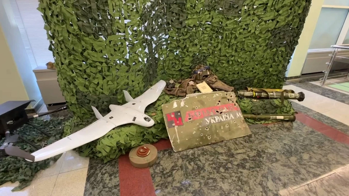 Парламентариям и гостям представили образцы военной формы украинских военнослужащих и иностранных наёмников, беспилотные летательные аппараты, а также документацию западного производства. Особое внимание привлекает БПЛА «Баба-яга», доставленный из приграничья, — такие дроны используются ВСУ для сброса боеприпасов.