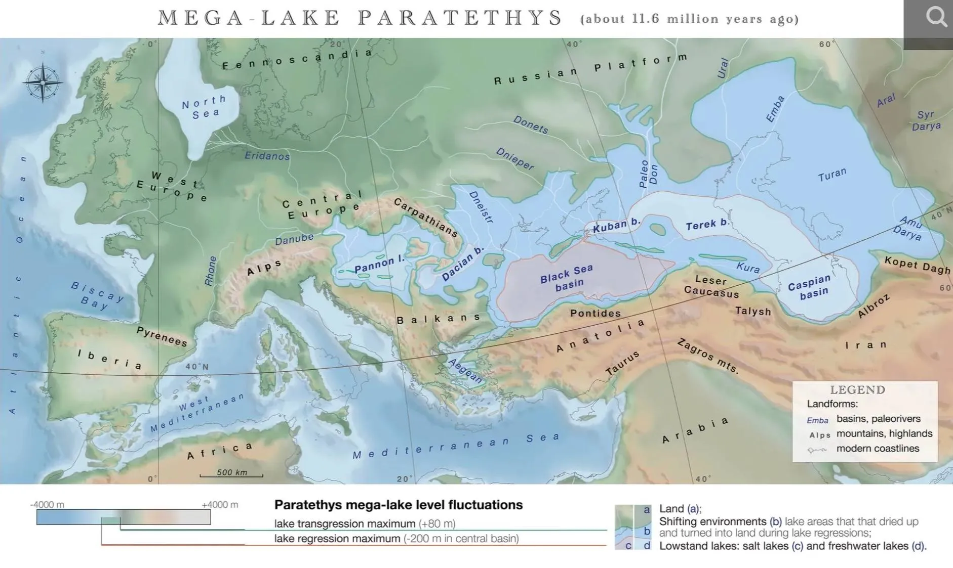 Расчёты, сделанные учёными из Утрехтского университета в Нидерландах вместе с их коллегами из Бразилии, России и Германии, указывают на то, что площадь вод древнего Паратетиса достигала 2,8 миллиона квадратных километров. Это больше, чем в современном Средиземном море. Существовавший примерно 11 миллионов лет назад бассейн раскидывался от Альп на западе до Туркменистана на востоке, или, как ещё говорят, "от Парижа до Алтая". Этот древний океан содержал в десять раз больше воды, чем все вместе взятые озёра наших дней. Когда Паратетис начал иссыхать, на его месте появились три моря — Чёрное, Каспийское и Аральское.