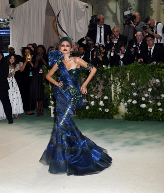 Зендея переоделась в архивное платье Givenchy. Все внимание досталось шляпе Alexander McQueen, сделанной в виде букета цветов. Кстати, это был первый выход актрисы на Met Gala за долгое время — Зендея 5 лет подряд игнорировала бал Института костюма.
