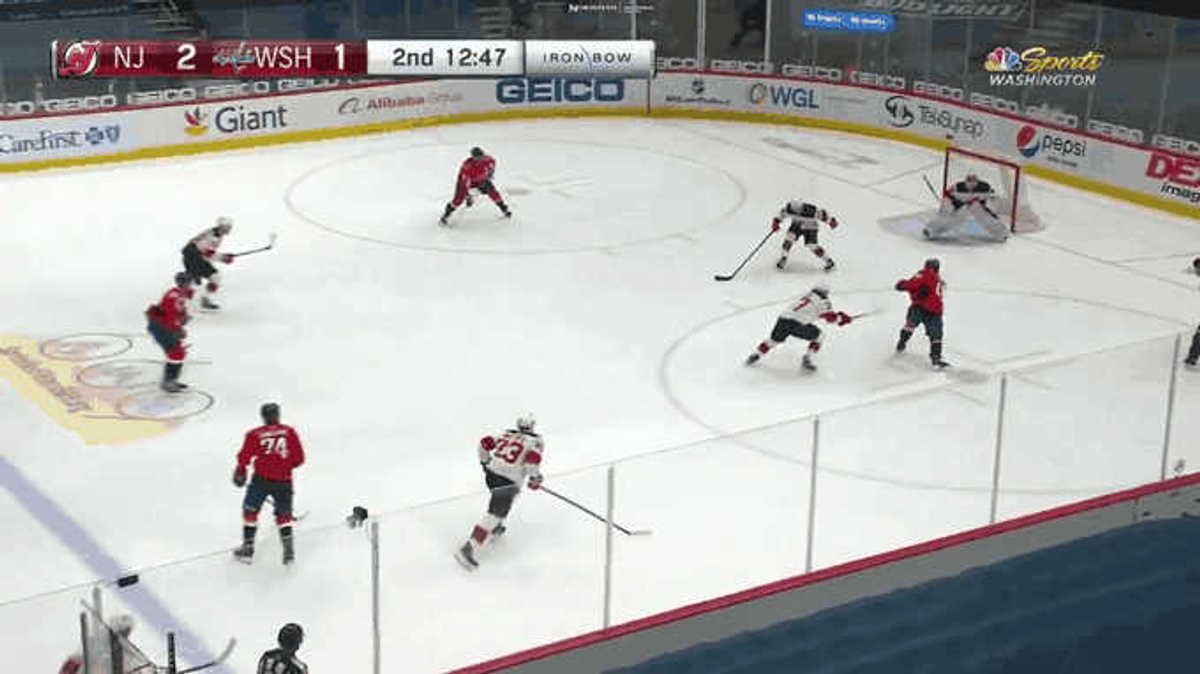 В очередном матче регулярного чемпионата НХЛ клуб "Вашингтон Кэпиталз" на своём льду одержал волевую победу над "Нью-Джерси Дэвилз" — 4:3.
