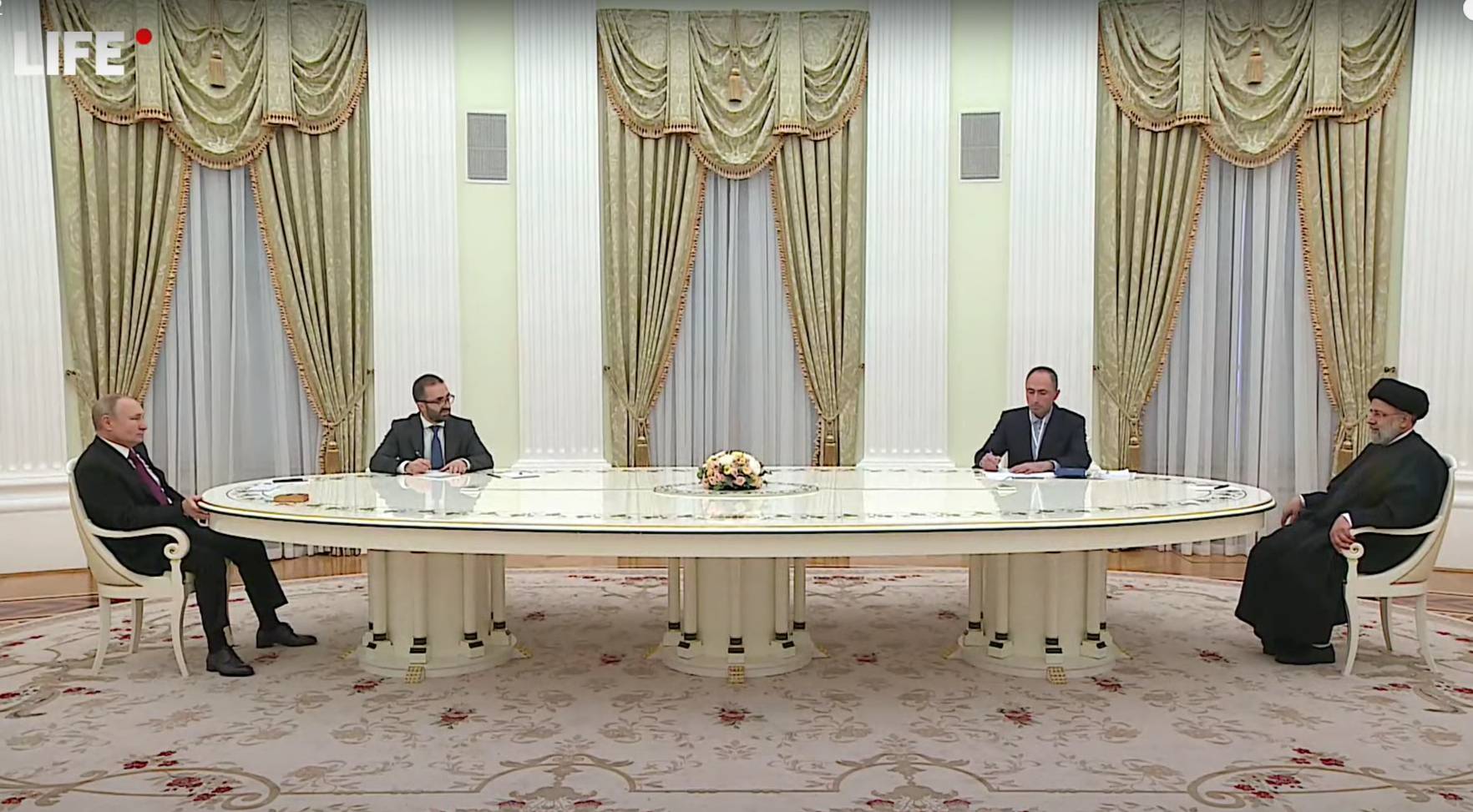 Пресс-секретарь президента России Владимира Путина Дмитрий Песков рассказал в беседе с Лайфом, почему на переговорах в Представительском зале Кремля глава государства и его коллега из Ирана Ибрахим Раиси сидели за столом на большом расстоянии друг от друга.