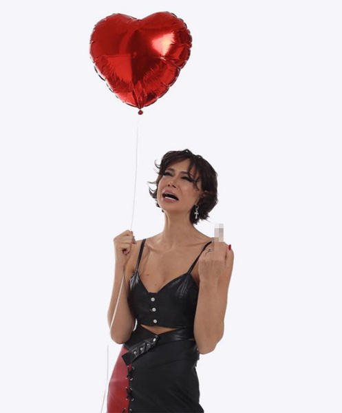 Далеко не такой дружелюбной оказалась Настасья Самбурская. Она обошлась без лишних слов и опубликовала фотографию на которой рыдает и показывает неприличный жест. Видимо, посвящая его всем своим бывшим.