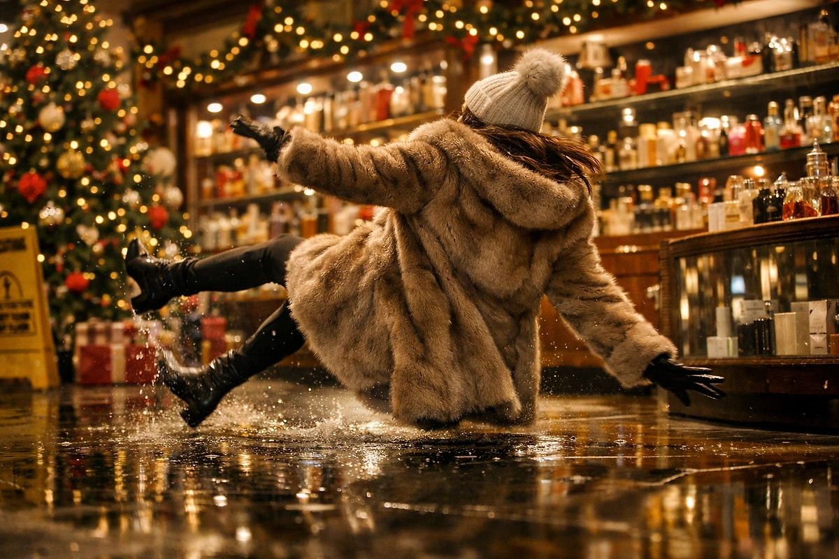 Инцидент произошёл под Новый год: девушка пришла в магазин за парфюмом и поскользнулась на мокром полу — незадолго до этого там разбили флакон духов, а сотрудники не убрали лужицу. В результате падения покупательница получила перелом, после чего последовали больница и вынужденный шестимесячный отпуск.